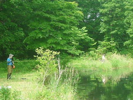 ☆第42回オーパー!ルアーコンテスト ☆6月20日撮影:O名人 午前9時、オーパー!ルアーコンテストの始まりです。まずはスプーンで表層の魚の活性を探っていると早々に隣でTomiさんが42センチを釣ったのでした。ポンドの中は藻が多く、中層でルアーを引くことが、ほとんど出来ません。いつもの夏のオーパーらしく、皆に同じ釣り難い条件なのでした。最初の20分、私にはアタリさえありませんでした。2箇所目に場所移動し、黒のトリックトラウトに反応が良いことに気付きました。魚が掛かかりましたが、伸び放題の雑草にロッド操作を阻まれ痛恨のばらし!ロッドを横に傾けることが、まったくできなかったのです。 花粉が飛び散って、ハックション、ハックション~ (続く)←投票して頂けると嬉しいです→ ◇第43回オーパー!ルアーコンテスト ⇒ 8月1(日)9:00~12:00 魚系以外のプラグでの数釣り競技です。