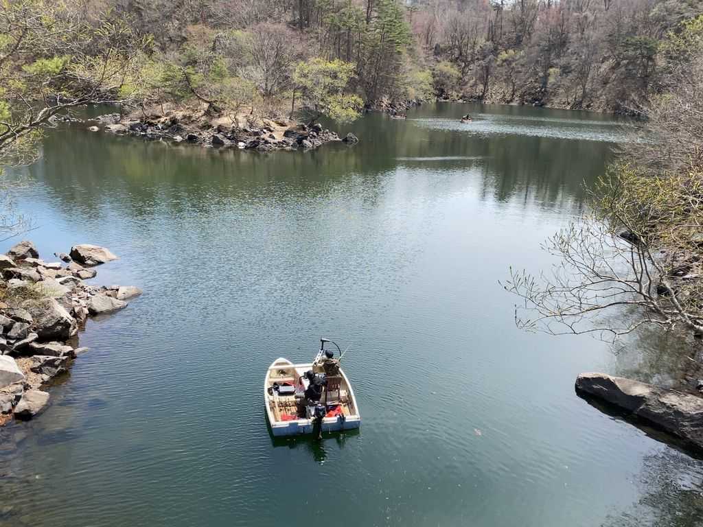 桧原湖は、まだ減水していましたので吊り橋を渡り湖岸の岩場を歩いて、釣れると確信しているポイントへ行くことが来たそうです。私も十数年前に蛙太郎と一緒に往復9時間ほど歩いて行ったことがありました。今では絶対についていけない遠い場所です。若いから疲れ知らず、なのでしょうね。(続く)