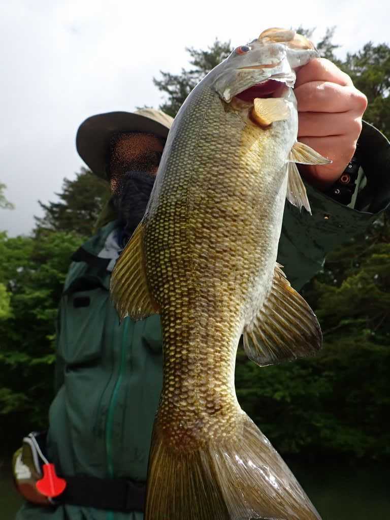 スモールマウスバス、全長は35cmを超え、良い引きでした。