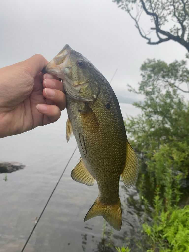 ひどい雨の日でした。蛙太郎は雨の桧原湖で良い思いをしていたので、またウェーダーを持って桧原湖へ出掛けたのです。あの日と同じポイントで早速釣りました。