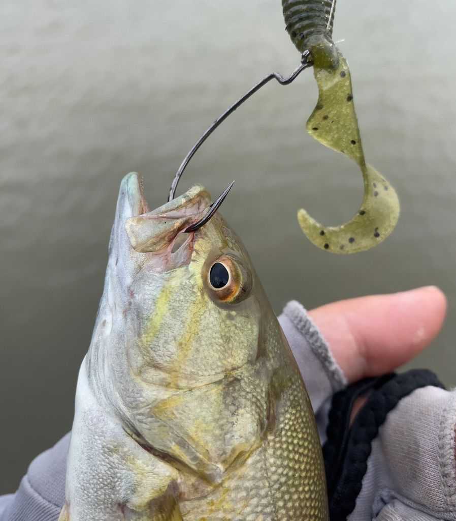 そしてフリーリグを使って、スモールマウスバスを釣ったのです。これはライトキャロライナ・リグより簡単そう・・・私も、この仕掛けを使ってみようかな。
