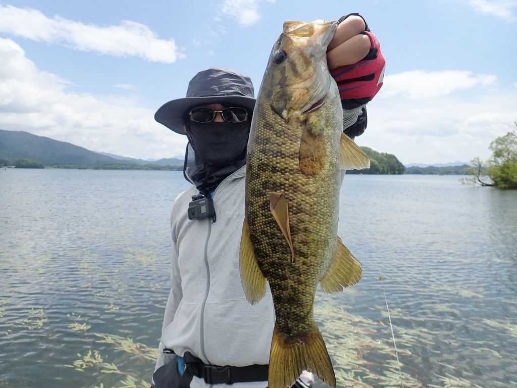 蛙太郎は湖面を見つめ「バスを見つけた」と言うと、静かにルアーを着水させました。得意のサイトフィッシングの始まりです。