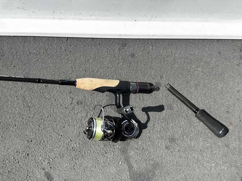 これからと言うときに、私のライトキャロライナ・リグ専用ロッドの柄が折れてしまったのです。私・・・心まで折れてしまいました