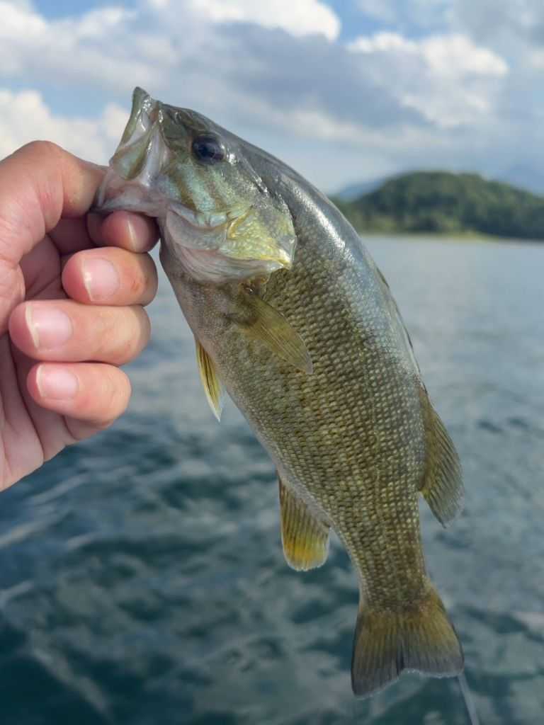 7匹目はスモールマウスバス。 ん~~綺麗ですが、小さい。