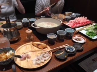 手前のタレは、左から塩だれ、フルーツポン酢、ごまダレ~