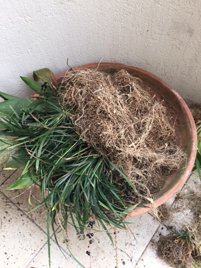 玄関の常緑観葉植物ひっくり返すとこんなことに根詰まりしてるから保水力ゼロ状態でした2013年10月に植えてから一度も植えかえしてなかったもの根詰まりするのは当たり前ね植えた直後の様子よりによって一番寒くなった日に作業しました