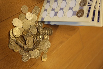500円玉貯金を始めて何年にもなります昨年は6万円になりました計算上は、1か月5000円になります穴のあいた台紙に500円玉をはめ込んでいくと1ページで1万円になりますそれが10ページ1冊で10万円貯まるというもの毎年繰り返して使っていますさて、貯まったお金は何に使おうかな