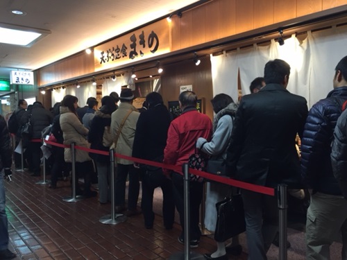 ここは三宮地下街にある「天ぷら定食まきの」着付け教室に通っている時ここを通りますがいつみてもこんな行列ができていました仕事が終わってから通っていたので空腹の身にはかなりこたえました一度は行ってみたいとおもっていましたが昨日念願が叶って夫と行ってきましたカウンター席につくと揚げたてがヒョイヒョイとお皿にのせられますご飯とみそ汁はおかわり自由とっても忙しそうなのに揚げ役の女性がとっても感じが良くて叱ったり声を荒げたりしないので居心地良く食べられますご馳走天ぷら定食¥1080かき揚げ、なす、卵、かぶ、えび、いか、きすが出ました女性でしたら普通の定食¥880で十分です単品もありますゴッツァンでした
