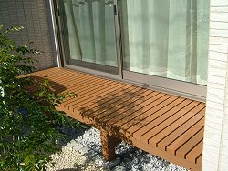 年末に完成していたものの アップするのが遅くなってしまいました(^_^;)みなさんにダークブラウンかミディアムブラウンかの色の相談をしたところみなさん わが家にはダークの方がいいのでは?というご意見でした。その節は どうもありがとうございました☆(〃^∇^)o_彡☆私もダークだなーって思って 翌日早速注文。が、急にナチュラルがいい!!って思っちゃって、急遽色の変更をしてもらいました。ナチュラルのほうが家の印象が明るくなって、フローリングの色から考えてもナチュラルの方がしっくりくるような気がして。そして何よりパパがナチュラルがいいと言っていたので。(ダークに決定したときは パパの意見は無視でした(笑))ていうか、「ナチュラルがいいけどダークでもいいよ」ってことだったので。ほんとは メープルっぽいもっと明るい色があったらいいのだけど、塗り替える勇気もなく そのまま使用してみました。うーん、ちょっと赤っぽい感じがあまり好きじゃないけど、パパはナチュラルにして正解といって満足していたので、ま いっか・・。いつか塗り替えよう!! 『WOODPRO』さんで頼んだ濡れ縁。間口・奥行き・高さがオーダーできるので わが家のリビング前の凹凸部分にぴったりと収まることができました☆またカナダの米杉で作れれていて、自然の木の甘い香りが心地よいです☆南面で日の当たりがとてもいいので、娘とよくひなたぼっこをします。大好きな切り干しイモを食べたり、おままごとをしたり。。フローリングは冷たいけど、濡れ縁は日があたるととても暖かい♪ちょうどこの上がバルコニーなので 庇がわりになって 雨にも濡れにくいんです。座布団やクッションも干せるし、パパのたばこを吸う席もできて 活躍度 大!!です!!☆(o゚▽゚)o