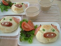 かなり前の雑誌「サンキュ!」に載っていたのをたまたま見て、おもわず作りたくなってしまった このブタパン☆今日のランチにしてみました。 いつもの娘と二人のお昼は超手抜きなのですが、今日はパパが娘を見てくれてたので ちょっとやる気になりました!なんたって ホットケーキミックスで作るパンという超簡単な作り方だったので、パン作りなんてしたことのない私もやってみようという気になったのです!!ホットケーキミックスと小麦粉、オリーブオイル、ぬるま湯だけ!寝かす必要もないし、すぐ焼けてすぐ食べれるってのが魅力でしたo(*^▽^*)oだけどね、時間通りやいても 中がちょっと生っぽい部分があってー(;´д` ) 一度取り出したらだめなのかな、また焼いたけどだめでした。。味は おかずパンなので素朴な味。バリエーションを変えて また挑戦してみようかなぁ~(o゚▽゚)o ヤルカナ??相変わらず娘はぜーんぜん食べてくれませんでしたがね、、┐(-。ー;)┌ヤレヤレ一体いつになったら まともにご飯を食べてくれるんだろう。ご飯もおかずも全然食べないんですよぅ、うちの娘。お菓子をあげなくても 一日トータルでごはん粒 スプーン3口とかいう日もあるし・・。こんなんなので 栄養足りないから まだフォローアップをあげてるけど 同年代の子で飲んでる子ってあんまり聞かないんだよね。みんなちゃんと食べてるのかなぁ~(T△T) ちょっと心配。。