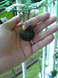 帰省より帰宅しドラクエ三昧の生活が戻ってきました。 blogの更新も滞りがちです。でも本日はみぎてくびが捻挫っぽいのでゲームはお預けです(´Д`;) 帰省より帰宅すると課題を残した緑のカーテンに思わぬプレゼントが! なんと小さな蜂がきてくれているのを本日発見(・∀・) 小さなごーやが出来ておりました。 帰省中もるーさんがそばにいてくれたのでお互い安心でのんびり過ごせました。実家の義理母からお誕生日のお小遣いも貰っちゃった(*^-')b ラッキー(*^▽^)/