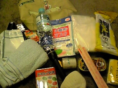 本日は関東地方は日中暴風雨でした。そして明日は防災の日。夫が会社に持っていってる防災グッズを定期点検のために本日持ち帰ってきました。シャツ、水、ろうそくとまっち、ビニール袋、タオル、携帯充電器、電池、軍手、割り箸、ティッシュ、マスク、さんまの缶詰、レインコート、懐中電灯。。。どれもほとんど100均でそろえました。水もサクマドロップも期限が切れていて、明日補充しないと。備えあれば憂いなし。でも、夫の職場はうちからも見えるくらいに近くなったので、以前とは比べ物にならないくらい安心感があります。でも・・・。なるべくなら起こってもらいたくはないですなあ。