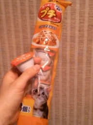 おなかに石をためないようにと獣医の勧めにより、子猫のときから高価なポリポリと安いぺちょぺちょを一日に数回に分けて少しずつあげています。
