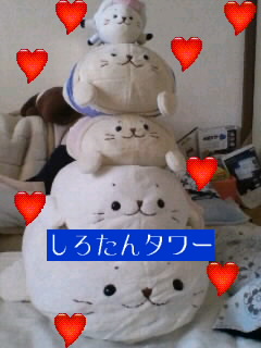 写真は旦那が大好きなしろたんタワーです。一番上のしろたんは旦那が職場にもっていってる癒されしろたん。