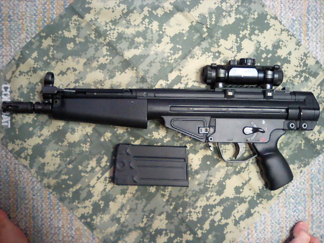 本当は折りたたみストックがついているはずなんですがサバゲ中にガンを落としてしまい、その時に ボキッ といってしまいました・・・