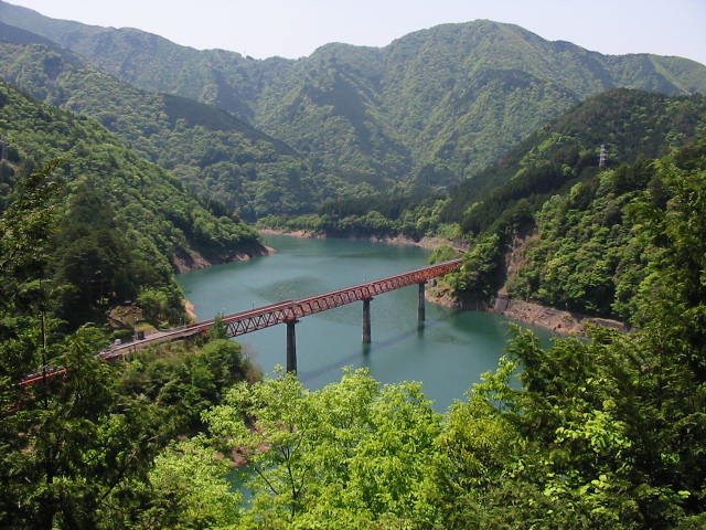 投稿が不定期になってしまいました。夜勤続きで眠いのとたまの休みは、出かけていまして。今日も、奥大井へ新緑を見に行ってきました。紅葉と同じくらい緑が綺麗です。その辺の新緑とはチョット違います。上の写真は、クルマで渡れるつり橋です。何となく大丈夫かいなと言うところです。(重量2トンまで)下の写真はトロッコ鉄道ナガシマダム湖が見えます。