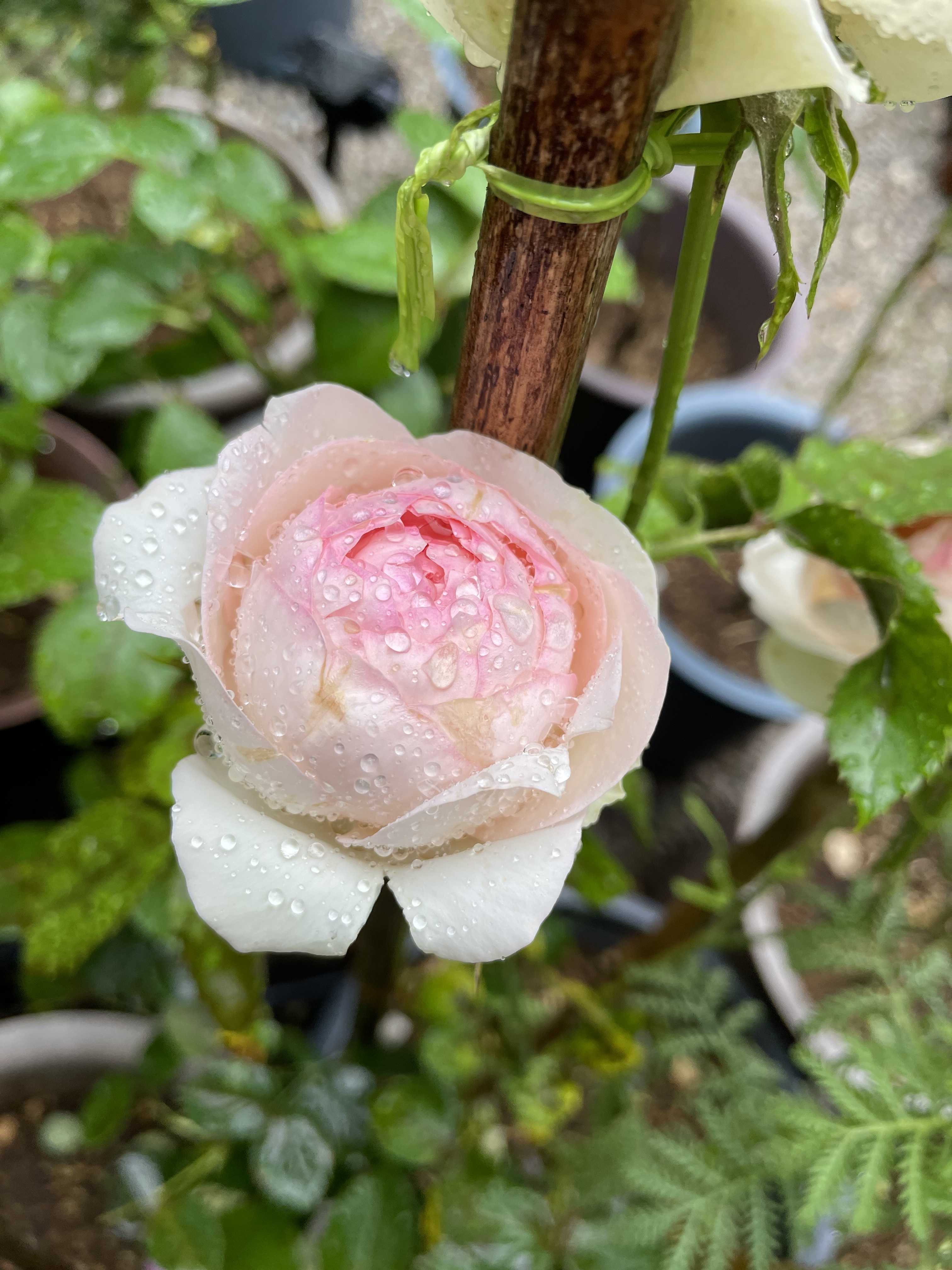 我が家の薔薇雨に打たれ傷みが早いです。春に咲いた1番花も咲き終わります。2番花の芽を出させる為に剪定します。本当は蕾もカットするのが良いのですが?私は残して楽しみます。1番花の最後、グランデアモーレです。大分前に1番花が咲き終わった。挿し木株のツルロココです。2番花は開花しました。淡い色は雨で傷んでしまいます。雨の雫が重く垂れさがってしまう。挿し木株のステンレススチールです。此方も2番花が開花しました。此れ1輪だけで寂しいです。純白の薔薇、アイスバーグです。2番花はたくさん開花しました。他の株も蕾を出してます。夏場は傷みが早く、暑さには弱いのかな?名前の通り、寒さには強いです。ROOMにも遊び来て下さい。