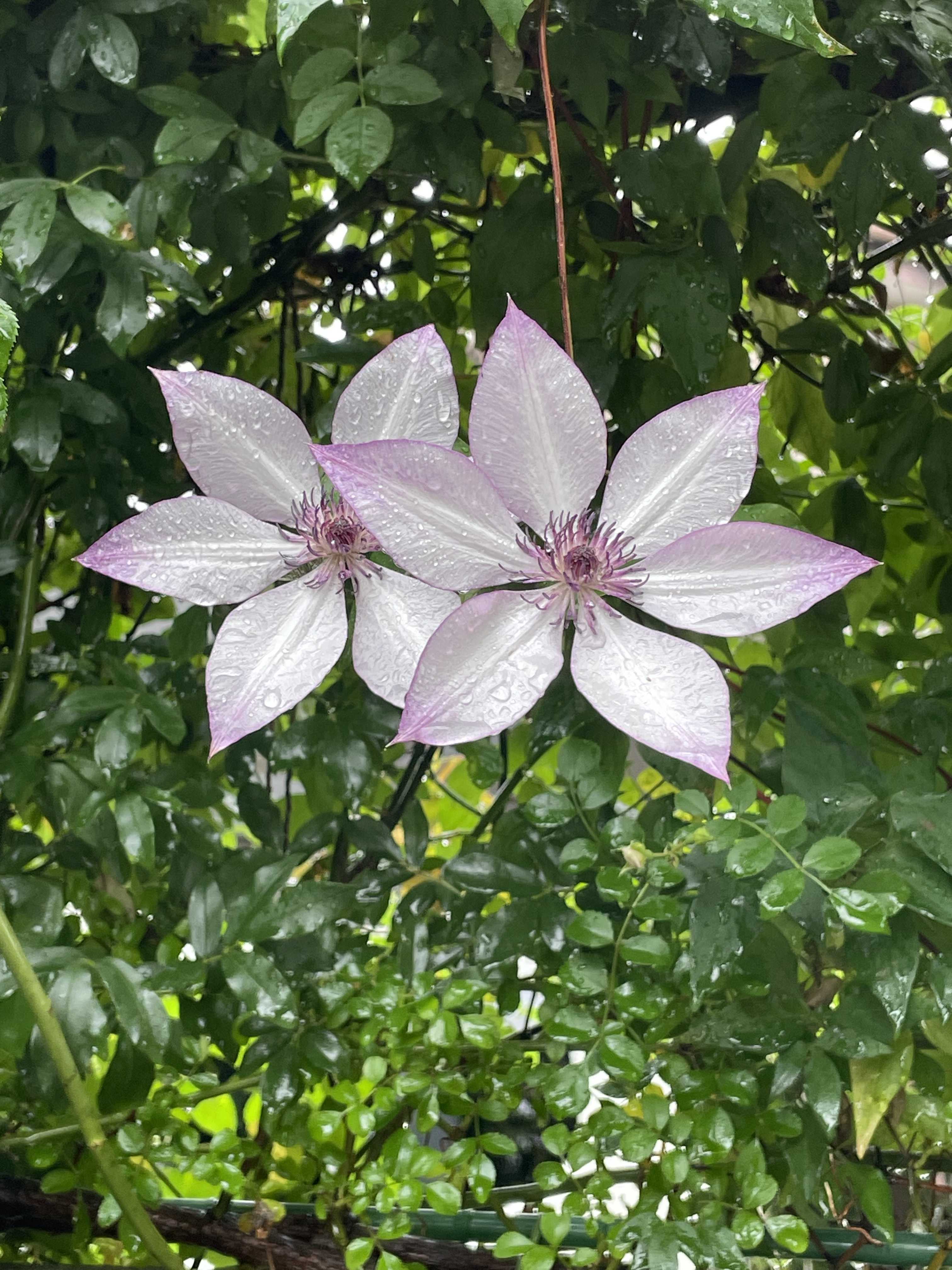 薔薇の1番花は終わる。まだまだ咲き続けるクレマチス。四季咲きはたくさんの蕾がまだ有ります。クレマチステッセン、そろそろ咲き終わります。雨でも傷まず綺麗に咲きます。クレマチス白マンエ、四季咲きで秋まで咲いてます。蕾から開くまで花姿を変えていきます。クレマチスDRラッペラ、新芽から最近咲き出した。これから開いて来ます。ノイバラとクレマチス白雪姫とフォンドメモリーは咲き終わりました。ROOMにも遊び来て下さい。