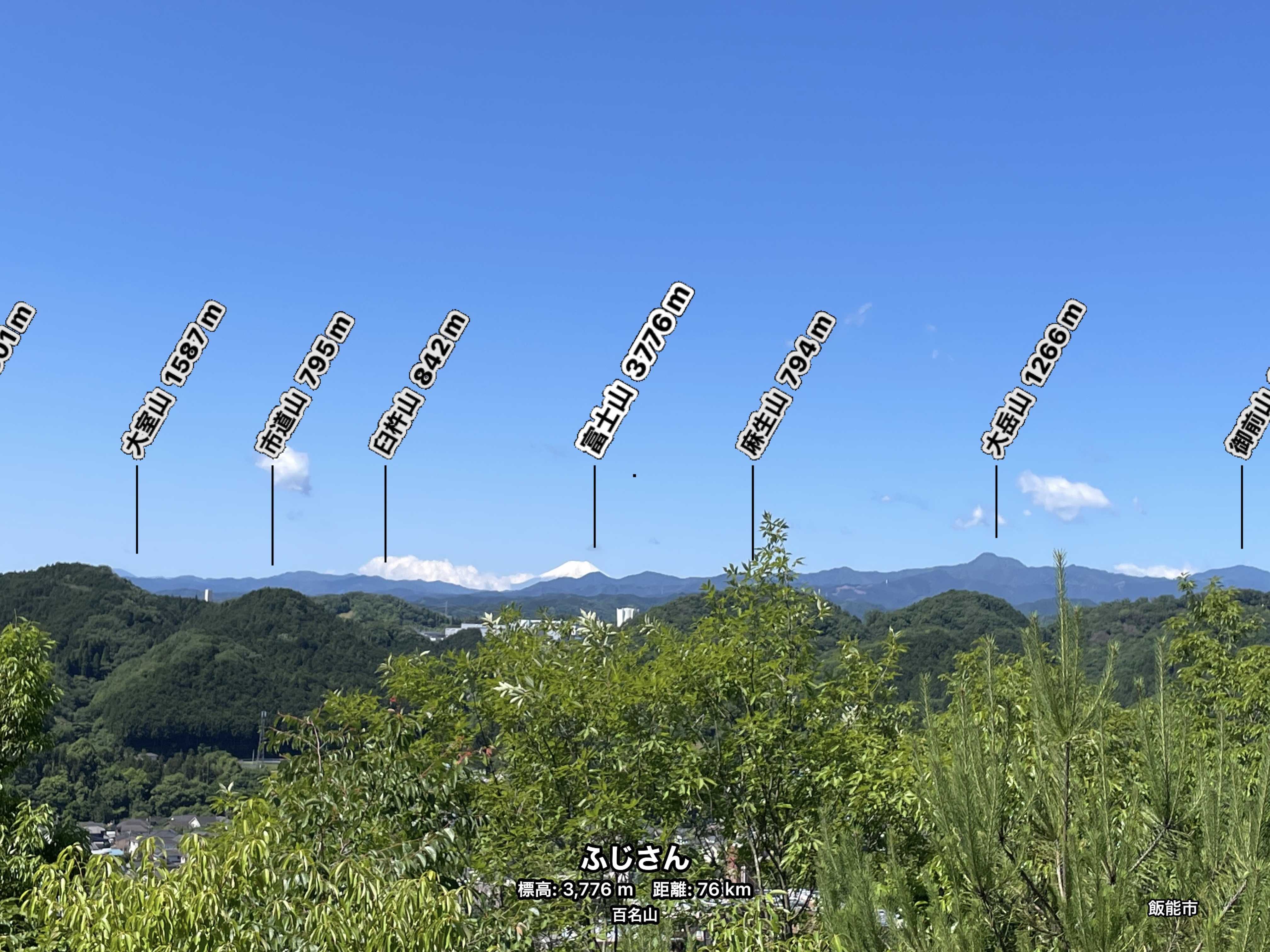 スマホを向けると山の名前が表示される。