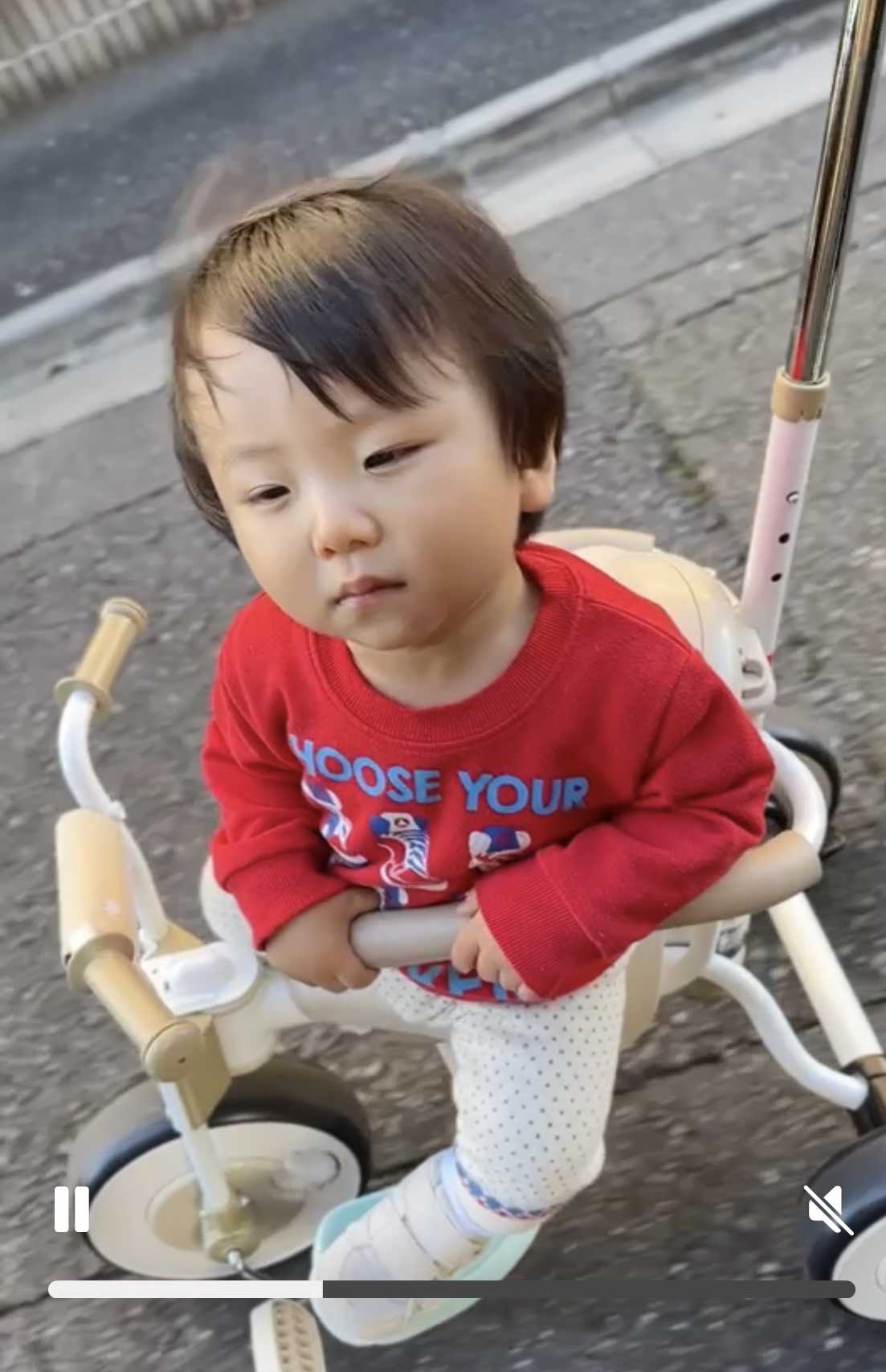 ママに押して貰ってご機嫌!