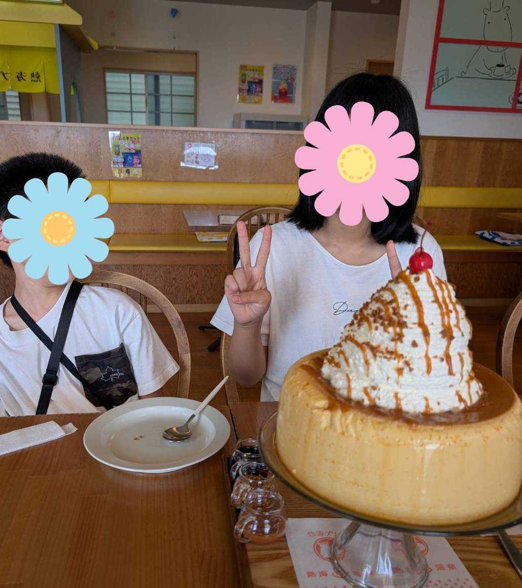この夏二女と孫たち 二女のお友達親子計5人で「熱海プリン食堂」に行ったよ~と写真付きでラインが来ましたまずは、圧巻のこちらを30人分、3キロあるそうですよ~この大きさなので、もちろん固めのプリン♪凄いね・・さすがに完食は無理だったみたい*因みに 完食できなくてもペナルティはなかったそうです我がママさんのブログで カフェのプリンを拝見したのでそうだ~ 皆さんに見て頂こうっと って(笑)少し前までゆるゆるのプリンが流行っていましたけどまた、昭和な固めのプリンも復活で嬉しい限り、です♪皆さん、食べられそう?