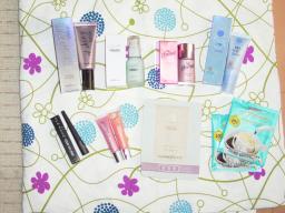 先日、とらぽんさんが交換に出されていた韓国コスメ、まとめて譲っていただきました上段左からバニラコ シャイニールミナイザーバニラコ プライムプライマーバニラコ シークレットハイライターエチュード BBクリーム下段左からバニラコ リキッドアイライナーバニラコ グロスTHE FACE SHOP エッセンシャルマスクシートブルックスのコーヒーアイライナーとマスクシートとコーヒーはオマケで頂いちゃいました あんまり上手じゃないけどレポしま~す シャイニールミナイザーは手に乗せたときはパールぽい感じなんだけど顔につけるとテカテカしなくていい感じに何がいいって香りがめちゃめちゃいいんです~ 香料が入ってるものは苦手な方なんだけどこれはずっと匂っていたいくらいでもしばらくすると匂いは気にならなくなります!プライムプライマー、これが1番のお気に入りです私はシャイニールミナイザーの上に重ねてつけるんだけど肌の上に1枚膜をはったようにお肌がきれいに見えます香りもシークレットハイライターはまだ使ってないので後日私はこれらの上に手持ちのリキッドファンデを使ってるんだけど今までのはなんだったの~っていうくらいいろいろつけてる感じなんだけどベースが主なので。。あとBBクリームは以前ハンスキンとエチュードの2種類を使ってみたんだけどハンスキン カバー力がある感じだけどクリームが固めエチュード カバー力は低いけどクリームの伸びはいい2つを比べるとこんな感じでした。でも朝1はナチュラルにパパーっと仕上げたいからエチュードの方がよく使うかな~ってことでもう1本追加で~。。グロスは手持ちのリップの上に重ねてみたんだけどとってもいい感じです!香りがあるんだけどおいしそうな香りなの~味はないけどね!リキッドのアイライナーは長~いこと使ってないので上手に引けなくなってる練習しなきゃ~!おまけで頂いた品々はもったいなくてまだ使ってませ~んあ、コーヒーは頂いたけどねおいしかったよ~とらぽんさん、め~っちゃ素敵なコスメありがと~!久々にメイクするのが楽しいよ私にもお役にたてることがあったらいつでもお声かけてね!