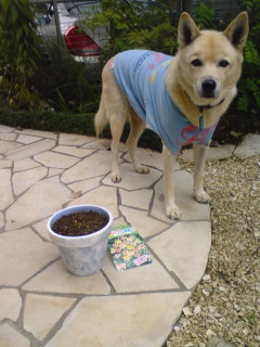 ぷ~まさんがペイントしてくださった鉢と球根とボクのおやつ(^_^)v