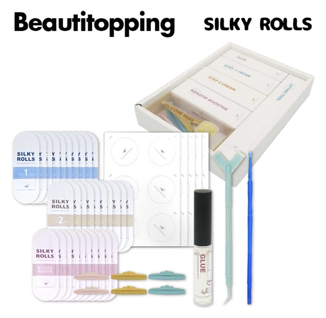 ロットをまつ毛の生え際に貼り付け、グルーでまつ毛をロットに貼り付ける。