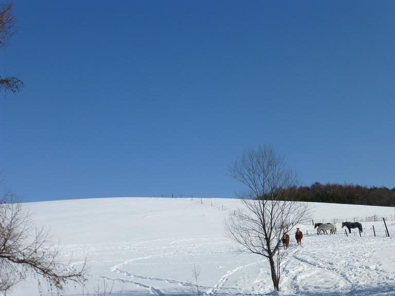 由仁のファームヤード大塚の手前に、馬を飼っている牧場がある。いい天気で、馬たちも気分がよさそうだ。馬と目が合ってしまった、一頭がこっちに来る。なにも期待されても困るから、退散。初スパイススープ。大豆のスープ。美味し。天気良く。遠くに見える夕張岳も白く光っている。あの左の出っ張りから右の山頂まで、1キロほどの高層湿原が続く。アプローチが遠くなったので、日帰りはきつくなったけど、また訪れてみたいものだ。ともあれ、いい天気、いい景色、旨いスープ。いい週末なんでないかい。