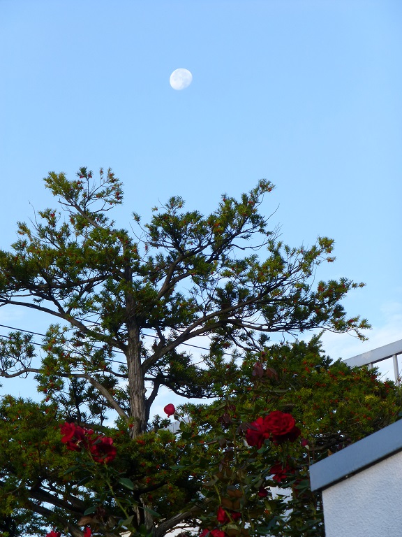 近所のバラとスーパームーンの名残を残す朝の月。荒城の月、ならぬ、紅葉の月。快晴の発寒川も少し紅葉になってきた。今晩から台風崩れの低気圧で大荒れの天気だと。紅葉の名残りやスーパームーンの名残りはいいが、台風の名残りはいらないな。明日はどうなる。