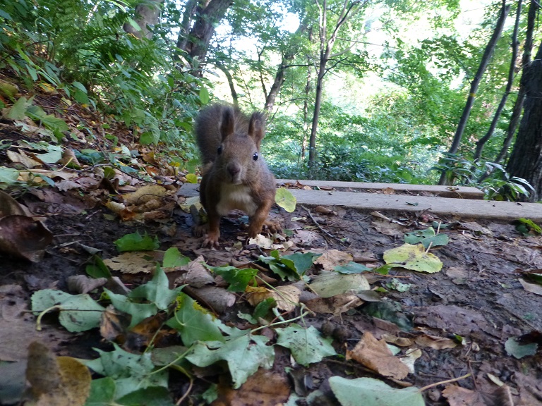 朝一番に円山散歩へ。いきなりエゾリスが登場し、私にエサをねだってくる。もちろん、手土産のない私だが、容赦なく私の周りを走り回った。しまいには、ズボンのすそまで上がってきた。餌付けされすぎ。知っている、その餌付けオジサン、私に似てないと思うが、なぁ、、、。人間に近づきすぎて、いつか事故にならねばよいが。冬眠はしないが、食欲の秋のエゾリス。頂上の温度計は15度。そんなに寒くないですね。やっぱり餌付けされたシマリス。爆食い!ほっぺがパンパンに。こっちは冬眠するからね、餌場を何度も往復していた。動物園に向かう道の頭上にコクワ。噂をすれば、あったよ。味見したかったが、、、ここは写真で我慢。昼は五○堂で、その足で千歳サーモンパークへ。千歳川を登るサケが見られた。これも豊穣の秋の象徴。アキアジ、全開の一日。
