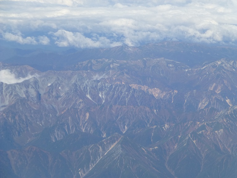 今年の夏を過ごした北アルプスが名古屋に向かう途中、天気に恵まれ、よく見えた。4月の名古屋での病理学会に向かった時には、雪をかぶった同じ景色が見えたが、今回は、夏に歩いたあとを空からの再会で、感慨深い。赤い線が今年の縦走路、青い線が2年前に歩いた縦走路。黒で囲った槍ヶ岳を挟んで西と東を歩いた。過ぎてしまえばあっと言う間だったが、どちらもいい夏だった。昨日、名古屋の学会から札幌に戻った。今日は、さっそく五○堂へ行き、チキン野菜カレーで満たされ、ようやく札幌に帰ったと腹も納得。今朝、ラグビーW杯で日本代表は勝利で終わった。ベスト8進出はならなかったが、五郎丸の涙が何かを成した達成感と成せなかった脱力感が感じられた。とにかく、終わったね。夕方、日本ハムがクライマックスシリーズを落として終わった。それぞれのシーズンが終わった日になったな。