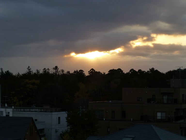 円山公園から登る朝日、これから12月にかけて、円山の左まで近づいてくる。そして、また北に戻っていく、その戻りが好きなんだが、まだまだ冬も来ていないので、先の話。昨日の健診、なぜいつも緊張するのかと思ったが、人間、自分をさらして、何か良くない結果がでるかもしれない、と思うと不安になるものだ、と思った。このトシになると、絶対という確証はない、それが不安を呼ぶ。ま、年を取るとますます命にたいする執着が強くなるもんだ、私も。昨日の10月20日、カミさんの誕生日、、、これが良くないかも、皇室の誕生日も新聞に出ていた、さらにさらに、あのイケメン、ゴリラ「シャバー二」の誕生日でもあった。こんな日に健診なんか入れるんじゃなかった。日付だけで、いろんなオーラが出すぎ。