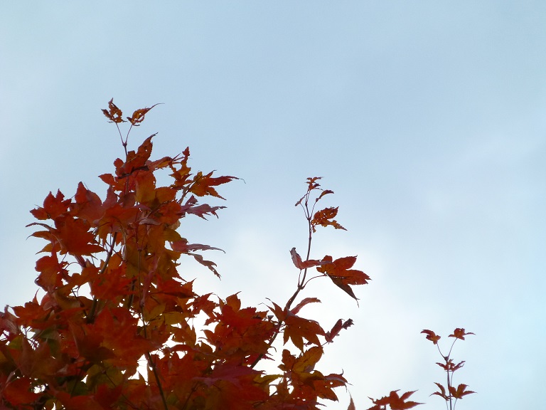 朝日の中、青空にもみじが映える。雪の後だが、秋晴れとなった。昨日に続き、今日も宴会だったが、早々に帰宅し、ベランダ星景写真家となる。今年初のスバル。一年ぶりにお会いしましたね。撮っているうちに、雲が出てきて、タイムアウト。おやすみ、スバル!