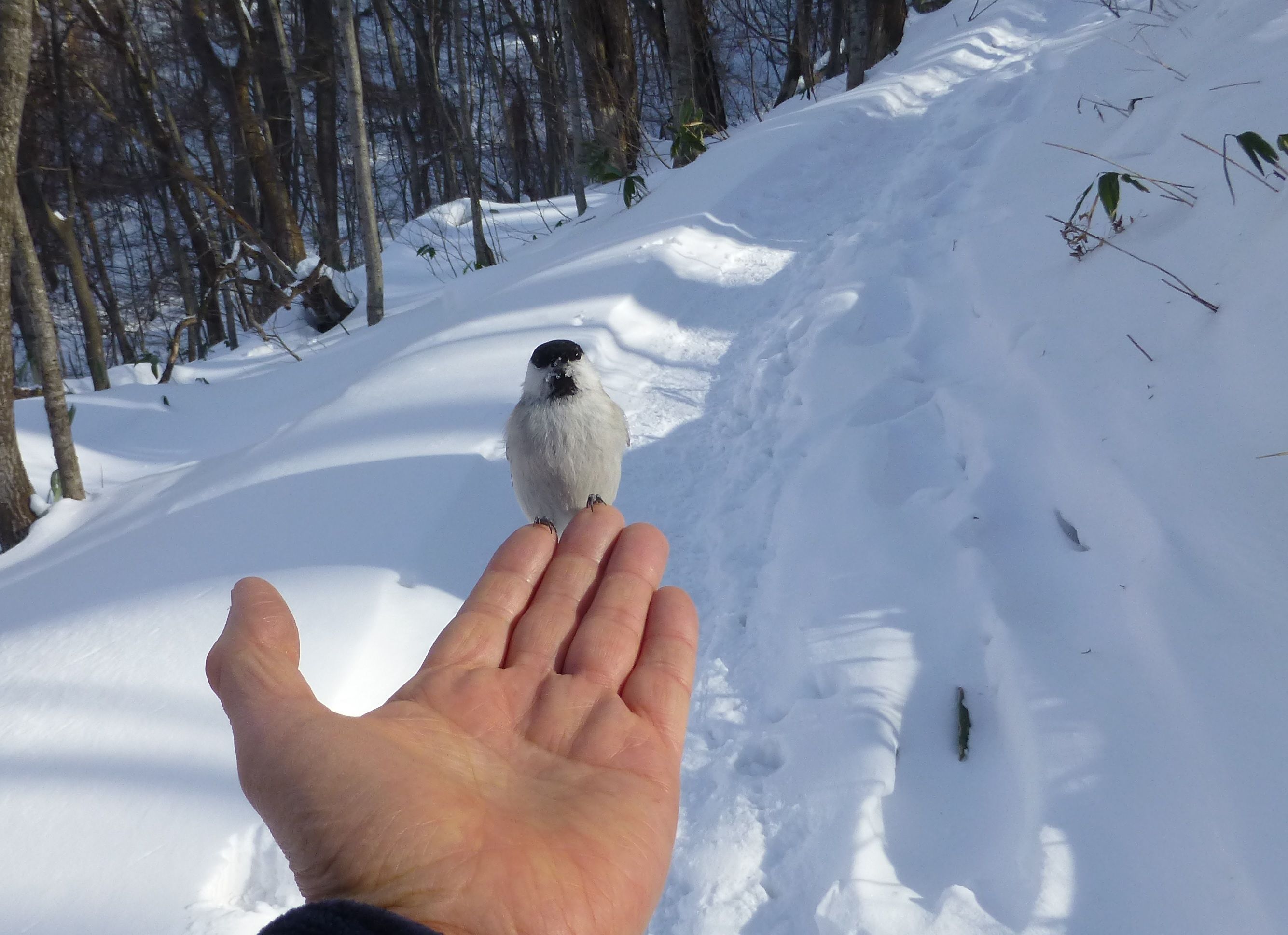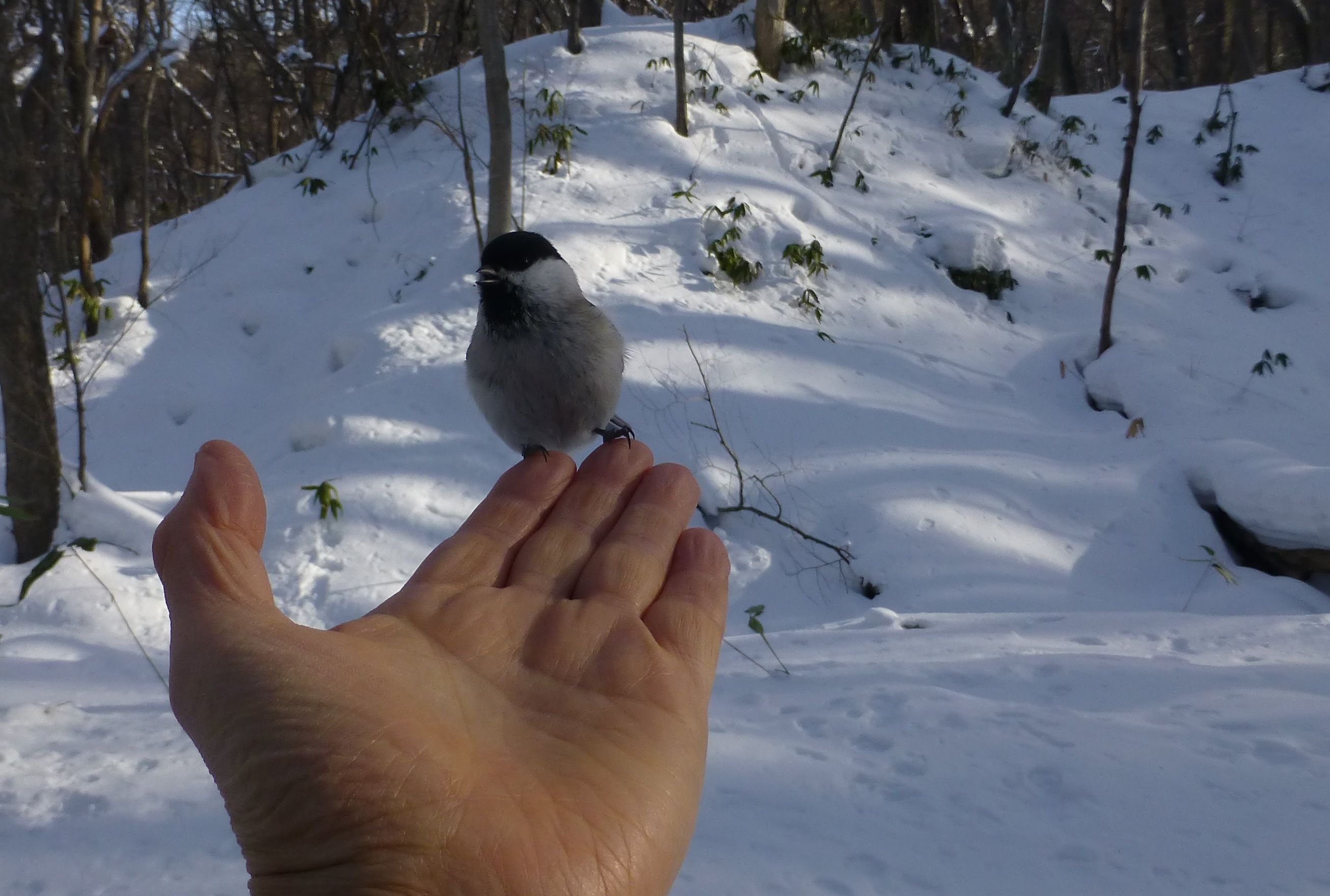 今日も晴れた。朝日はもう、円山公園を南から北へ3分の一ほども戻って登って来た。1月が過ぎるのも速いが、太陽もいつのまにか円山の麓から遠のいていた。さて、きょうも円山散歩へ。私の手のひらがそんなに人気か、入れ替わりゴジューカラがやってきて、よく見ると、左後ろに次を狙っているゴジューカラが木の幹にへばりついて待っている。その順番が来たゴジューカラ、残念だったね、世の中、期待通りにはならないこともあるんだよ。さらに登る途中で、今日は私人気者だね。人間界でもこんなにモテたらさぞかし、、いやなんでもない。日が差して、足が長く見える、、、モテる人気とは関係ないな。帰り際にも、やってきた。後光が差しているね、縁起がいいかも。で、昼は、五衛門の鍋焼きうどんであったまった。おばちゃん、今日もふたを開ける時に「ジャーン!」と言ってくれた。期待通り!ここまでで12時前、午後はまったりと過ごして、いい週末だね。明日から天気は下り坂、いい週末でよかった。