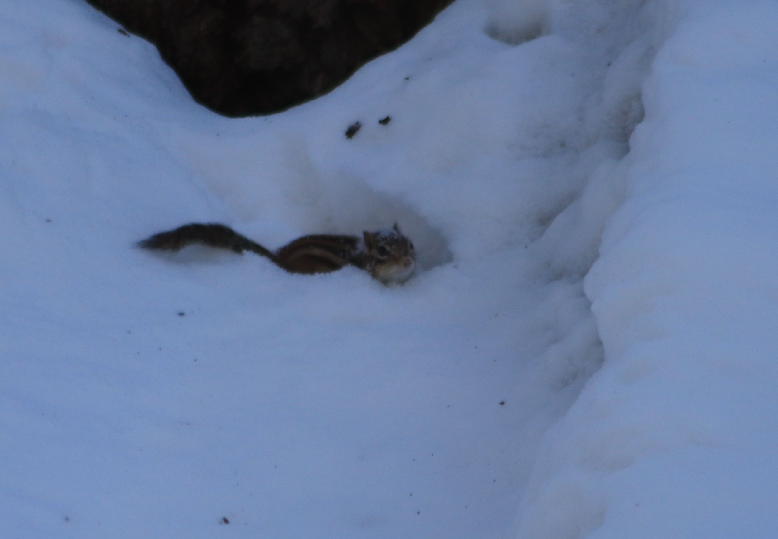 カメラマンが集まっていたので、何がいるかと思えば、シマリス。円山散歩、今年初登場。冬でも冬眠しないシマリスがいて、それは外来種、という話があったので、それかなと思ったが。そばのカメラマン曰く、天気がいいので、早く目覚めてしまったのだろう、と。真偽のほどは定かではないが、2月中旬の真冬にシマリスとは、オドロイタ。カミさん、今年初の円山散歩で、鳥たちに遊んでもらってゴキゲンだった。仕上げの昼めしは、五衛門の「あさりそば」、いい出汁がでて、これまた結構。思いがけず、いい3連休になったね。