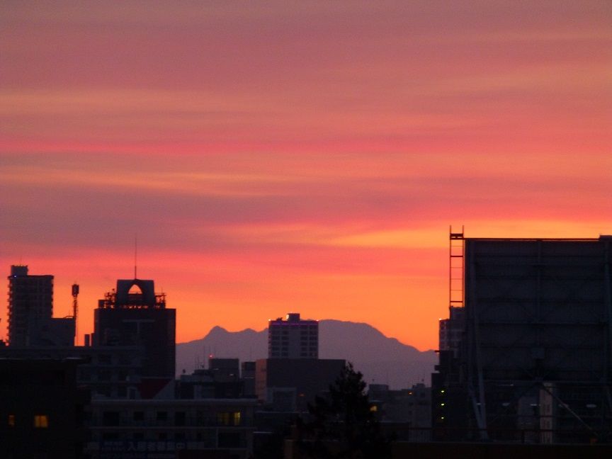 朝焼けに染まる夕張岳、「おいしそう!っていうやつがいたほど」快晴の朝となった、で円山散歩小鳥と遊んでもらって、シマエナガにも会えて、いかったね。午後は友人宅で飲み会、いい一日でないかい。