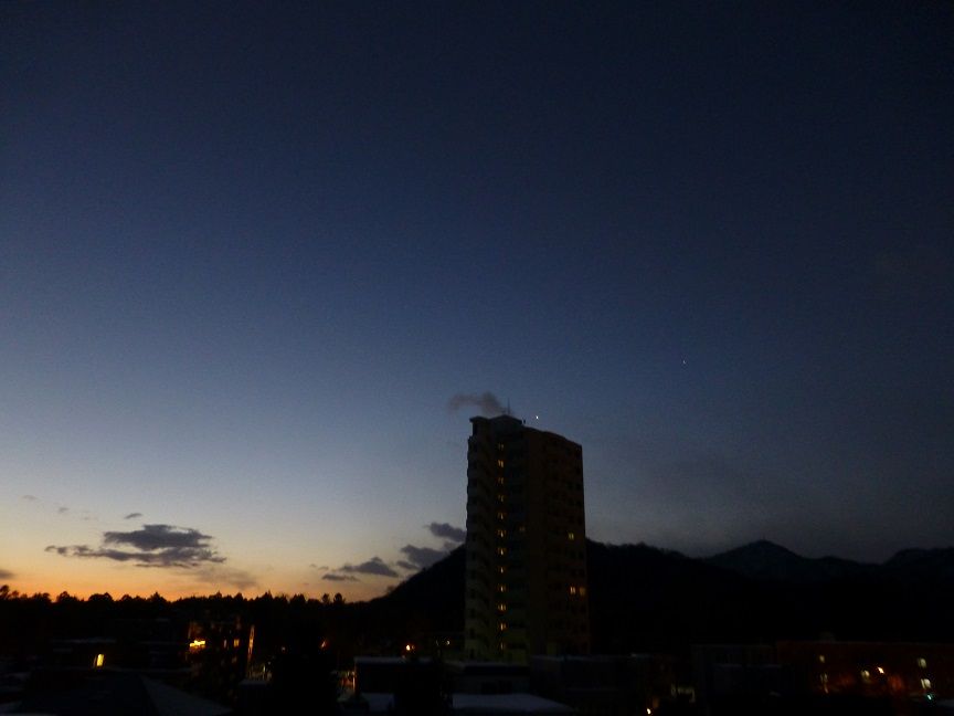 昨日、久しぶりにオリオンが見えた。やっぱりいいね、このダイナミックな存在感。冬の星座で、当たり前の景色だが、久しぶりの景色で思わず、帰宅後カメラをベランダに。今朝まで天気が持った、左から三日月、金星、木星。どれも存在感あるね。この後、荒れた天気になったが、夜は新年会。星と宴会で始まった2月、いいね。