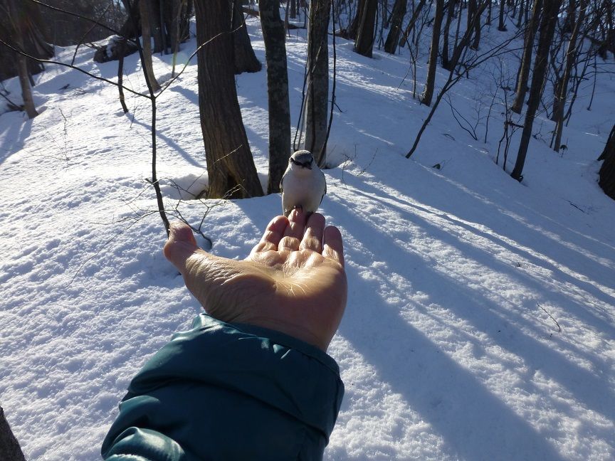 まだ雲が厚いが、夕張岳と朝日のそろい踏み。いい朝でないかい。なんか発作的にパンケーキが食べたくなっってね、作った。そういえば、「パンケーキ食べたい!」って芸人、最近見ないね。ま、いいか、写メ送ったら、卵焼き、と言われた、、、ま、確かに見えないこともない。さて、点検前に1時間ある、歩けるだけ円山散歩に行こう。いきなり、おねだりポーズのエゾリス登場。朝日がいい感じで注いでいる。で、お約束、やられたポーズ。で、時間だしと思って、下山すると、先ほどのエゾリスの場所に、クマゲラ登場。もう一羽いるから、どうやらツガイで春の準備のようだ、食欲満開。カメラマンも満開で雪道を塞いでいた。私は先を急ぐんでね。無事に点検終了し、安心して、昼へ。今日の五○堂は、カキのインドカレー、カキのソテーがいい感じに美味い。私も食欲満開、で今日も、昼で、シメ!
