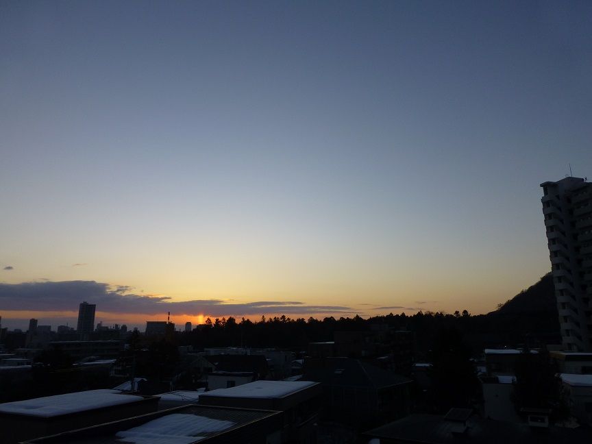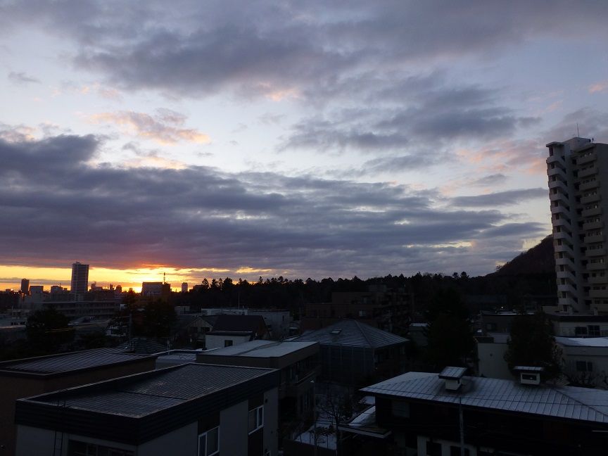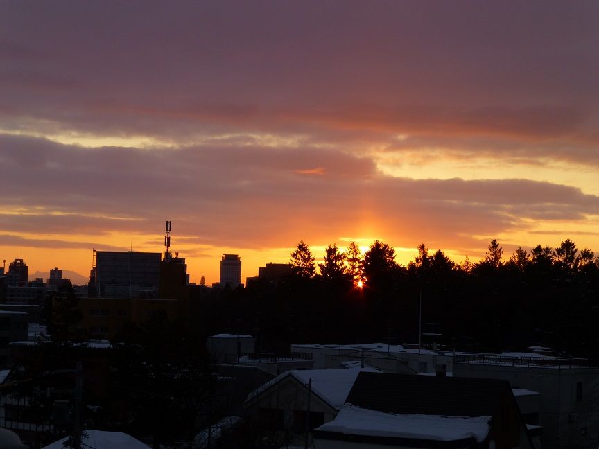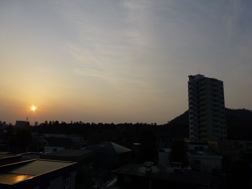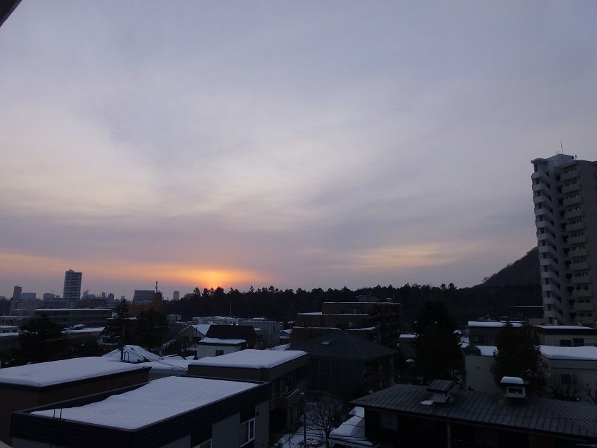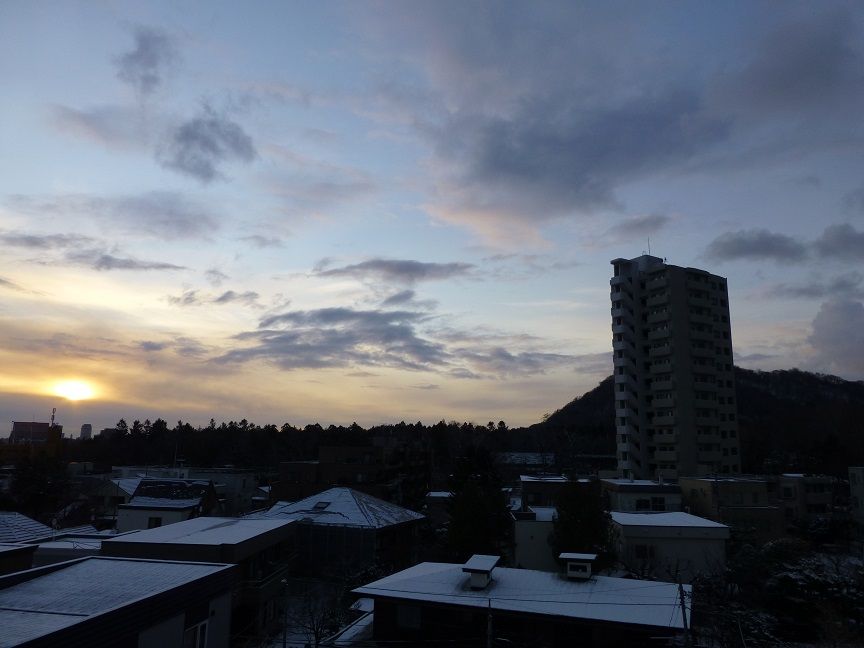 夕べは雪が降って、一応上がったが、日中、また降ったり止んだりの天気だった。朝日はもう円山公園の北に登るようになった。天気もさることながら、新型コロナウイルスも北海道で出たり、消えたり、同僚は結局、旅行も春の病理学会も流れてしまって、ぼやくことしきり。私「これって、昔でいうと、『天中殺』だよね、、、死語だね」相棒、その言葉を知ってる、、、トシを感じる。みたいな、会話。なんとか、天気はやがて春にむかうが、ウイルスも落ち着いてほしいものだ。