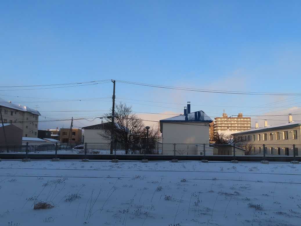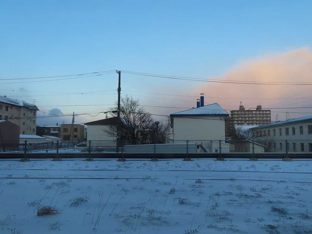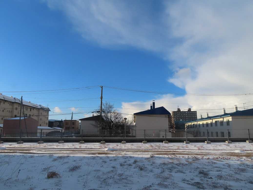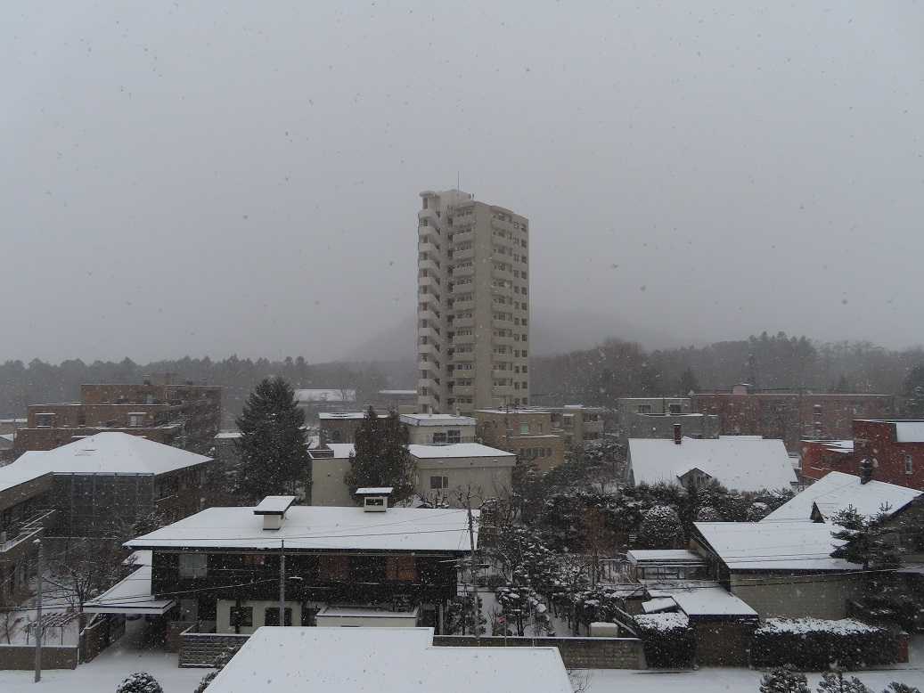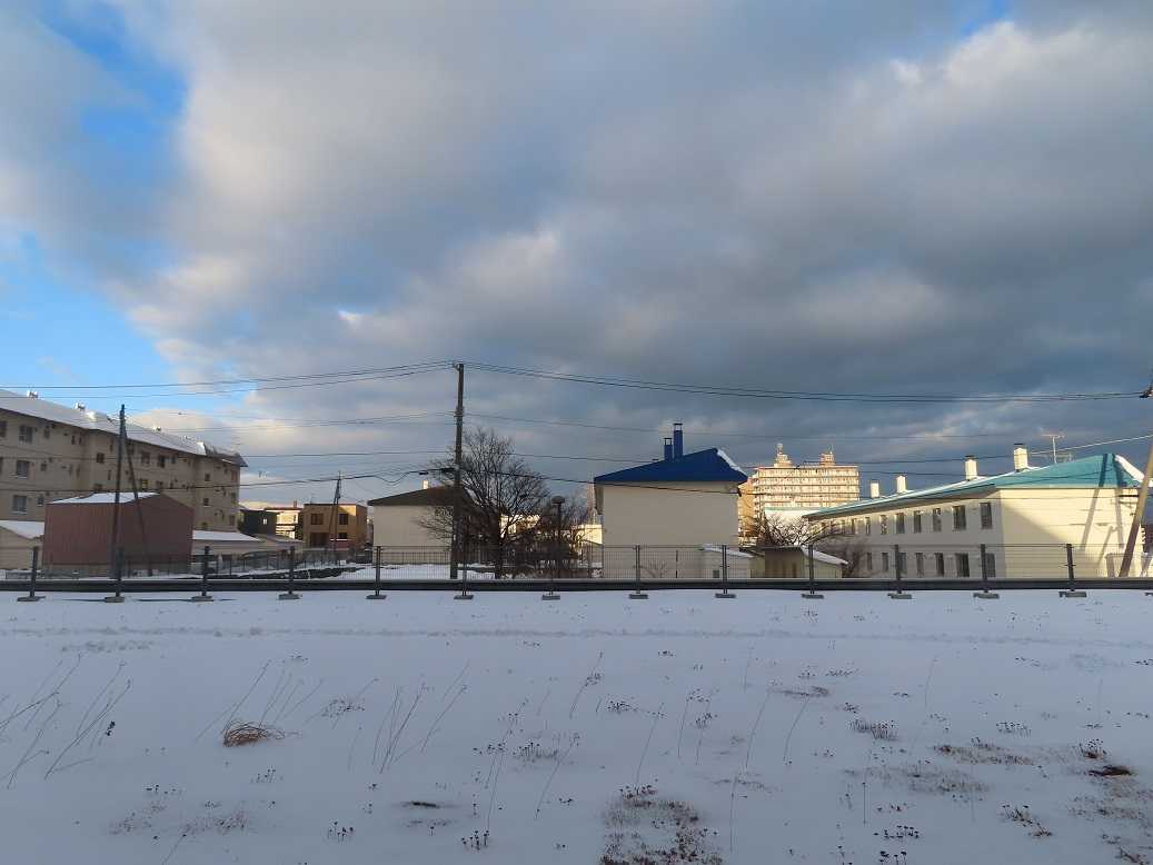 朝、青空も見えるが、石狩湾には大きな雲が居すわっている。これが、岩見沢に流れて、1mの雪を積もらせているんだね。札幌は3センチ、ま、いいか。一日中気温は零下の真冬日が続いているが、、、