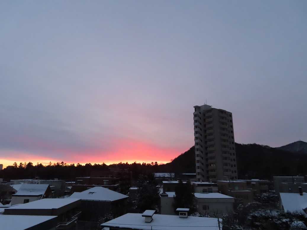 マンションに日の入り、、、雲がかかったけど、マンションから日の出、、、この季節。そんな景色を横目に、午前中は「小さな村イタリア」でイタリア気分。ふと、なぜかラーメン発作が起きて、、久しぶりの山頭火へ、「辛みそチャーシューメン」、美味し。で、その足で、本屋へ向かい、「本気で学ぶイタリア語」を買ってきた。ほとんどロックアウトの札幌、日本、せめて、イタリア語でイタリアに行った気分。なんか、年末はこの調子で過ぎてしまいそうだ。呑んで、食うだけ、、、後が怖いね。