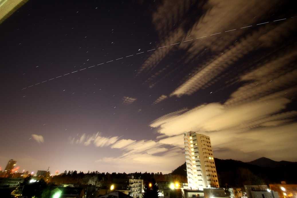 昨日、札幌の真上を野口さんを乗せたISSが通り過ぎて行った。あいにく、雲は取れなかったが、その合間に、ISSを撮ることが出来た。「のぐちさ~~~ん」と呼ぶと、返事してくれた、とカミさんに話したら、「ふ~~ん、、、」で終わった。やっと会えた、ISS、民間ロケット成功後の初写真、メデタイ。この偉大な瞬間、素晴らしい!