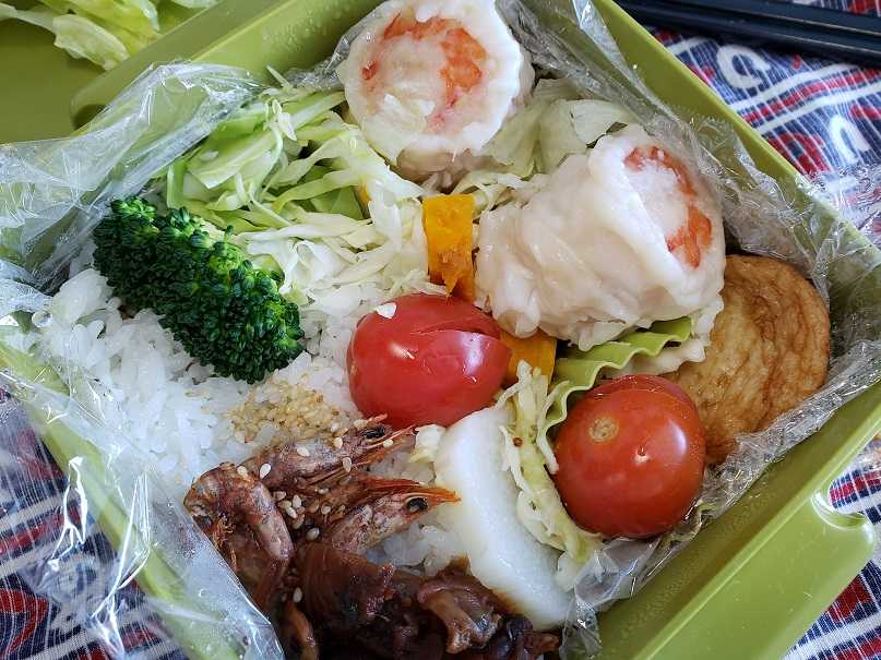今日の弁当、上に、頂きものの「エビシューマイ」、中身は全くエビ、一個でほとんどイセエビサイズ、なんでないかい。下に、エビの佃煮、これも頂き物。ご飯の間にサンドしたカレーと一緒に食べると、シーフードカレーの味になる。これぞ、平野レミ、口の中で完成する料理、、、美味し。寒いけど、頂き物で至福の弁当。