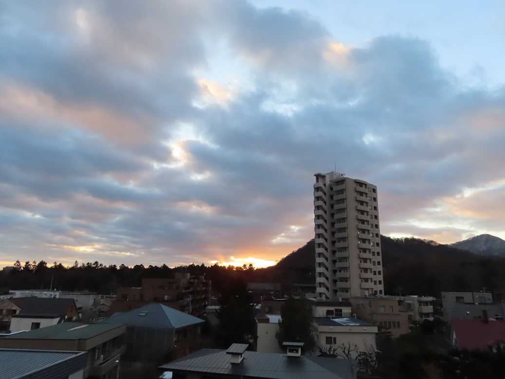 不思議な朝になった。厚い雲の空なんだが、東には雲の下に晴れが広がっている。夕張岳さえ、くっきりと見えている。気温はマイナス12度、今季、最低気温。寒いけど、暖かい気持ちになる朝だ。で、年越しの一日。いいね。
