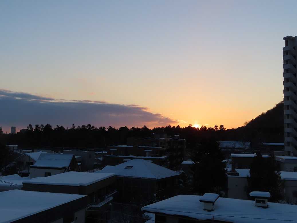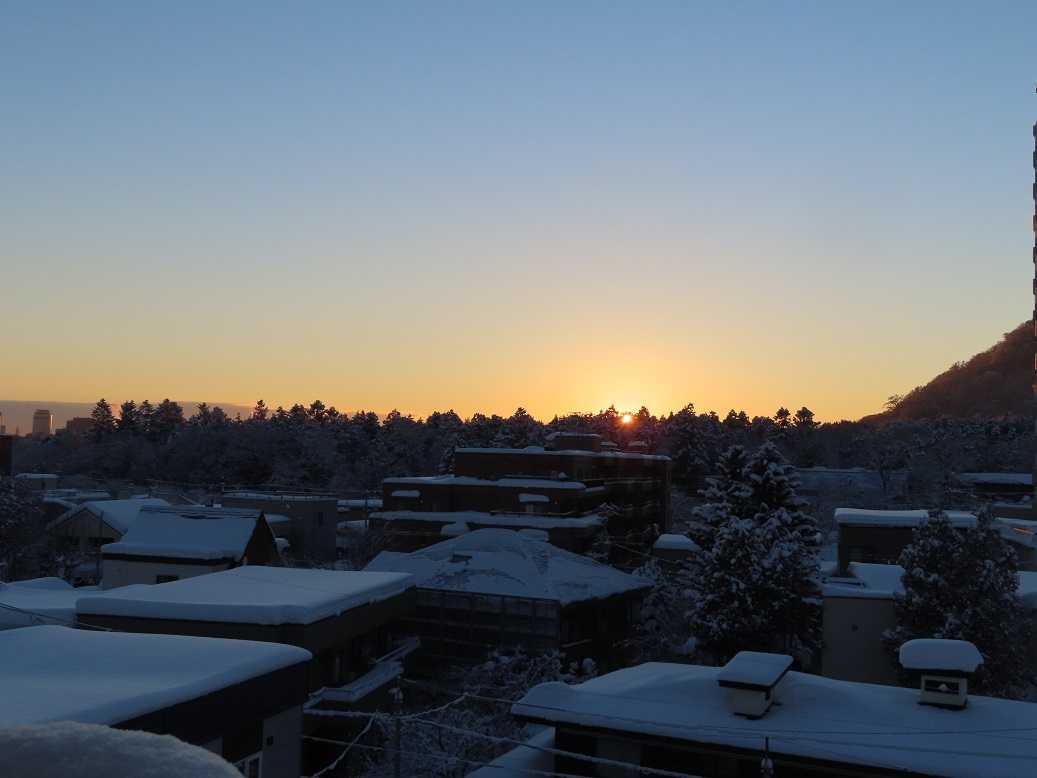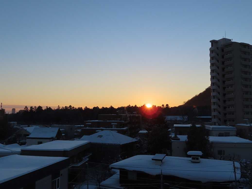 医局前に朝日が当たっている薄曇りの朝になった。真冬の北海道では最も気温の低くなる1月下旬の月曜日。なんにも元気が出る材料はないが、昨日、円山散歩でたっぷり遊んだので、まあ、納得の月曜日だね。春の話で盛り上がったら、やっぱり、春よ来い、という気分になった。大寒の季節の札幌。