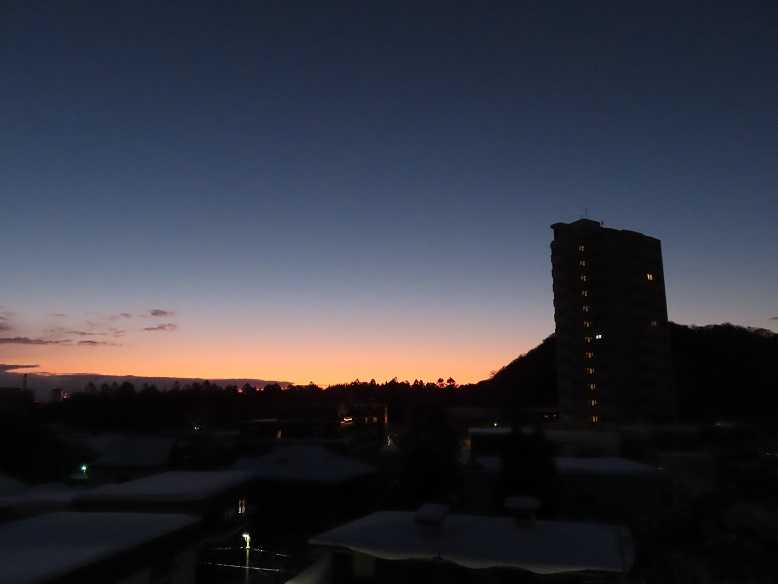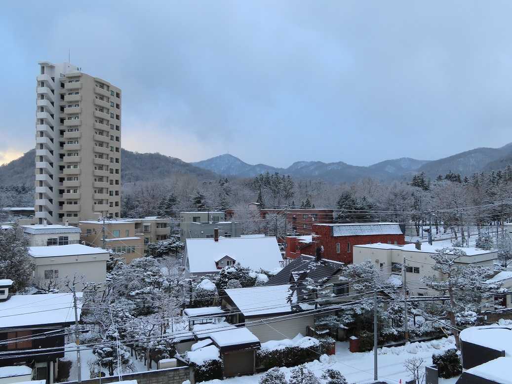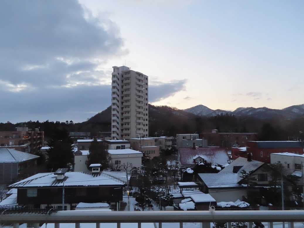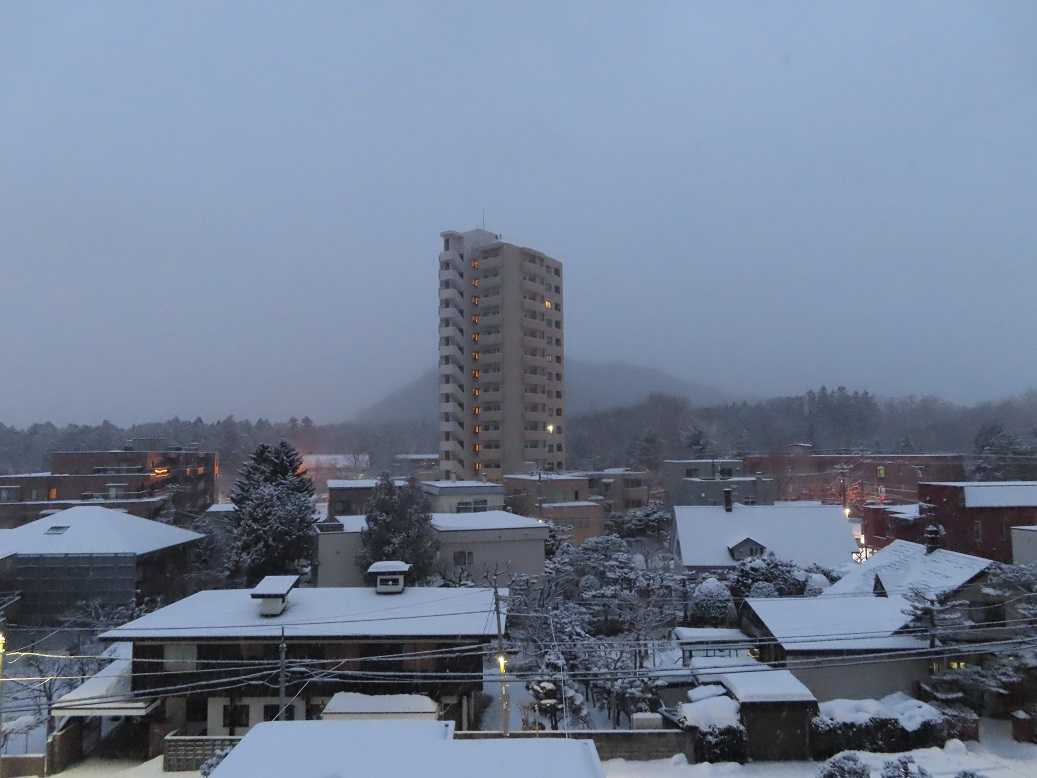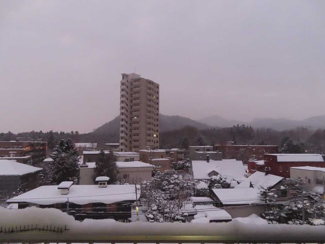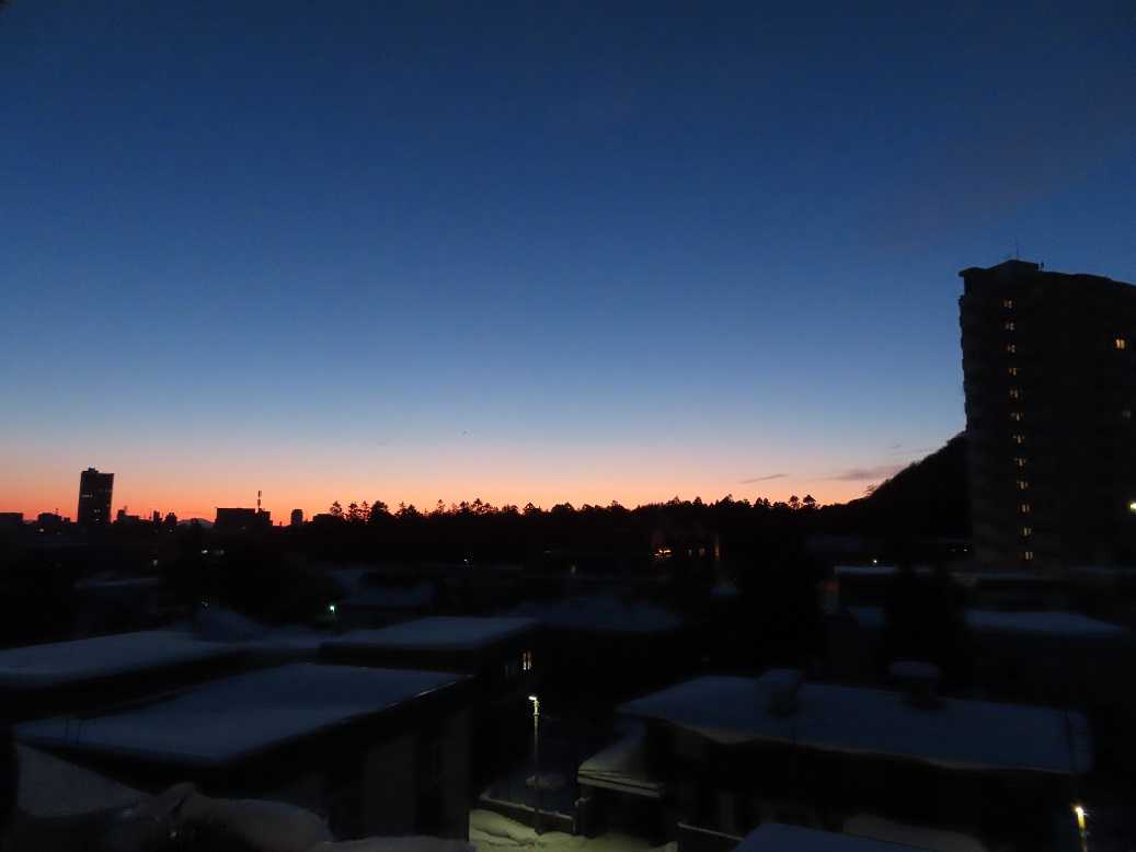 快晴の朝で、グラデーションも見事だ。夕張岳もくっきりと。しかし、天気のいい分、放射冷却で、ー13度、寒い。とにかく、気を取り直して、月曜日、出勤するしかない。バスの運転手が足りなくて、乗り継ぎにつかっていたバスは運休だと。歩くしかない、月曜日。
