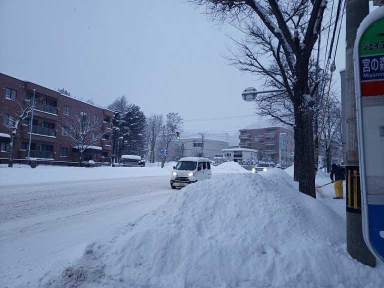 30㎝の雪が降ったあと、バス停の周りは雪山ができていた。そして、そのバス停前をきれいに雪かきしているオッサンがいた。目の前のマンションの人だ、なんと、感謝。マンションとは直接関係ないのに、このバス停を利用する住人もいるのかもしれないが、とりあえず、今、バスを待つのは私ひとり。朝から「ありがとうございます!」とバスに乗った。気持ちのいい出勤となった。