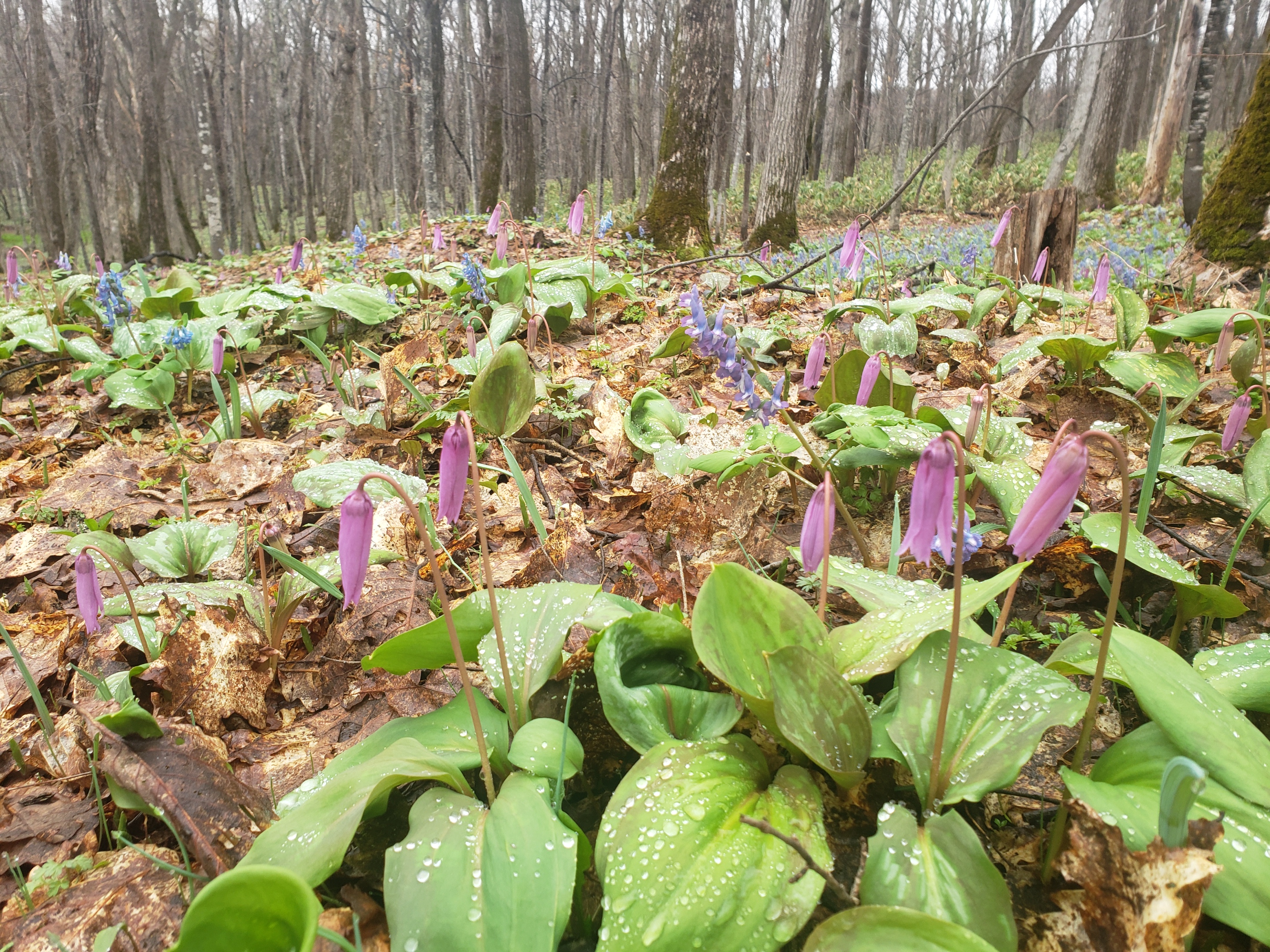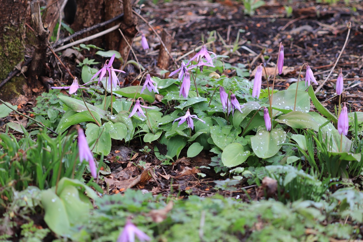 カタクリは寒さと雨で、閉じたままま、そんなもんだ