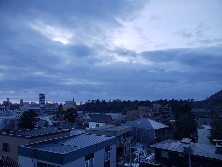 朝から厚い雲の一日になったここは手稲、山口、8か月前にきたばかりだひとにはお構いなしに時間はどんどん過ぎていくね